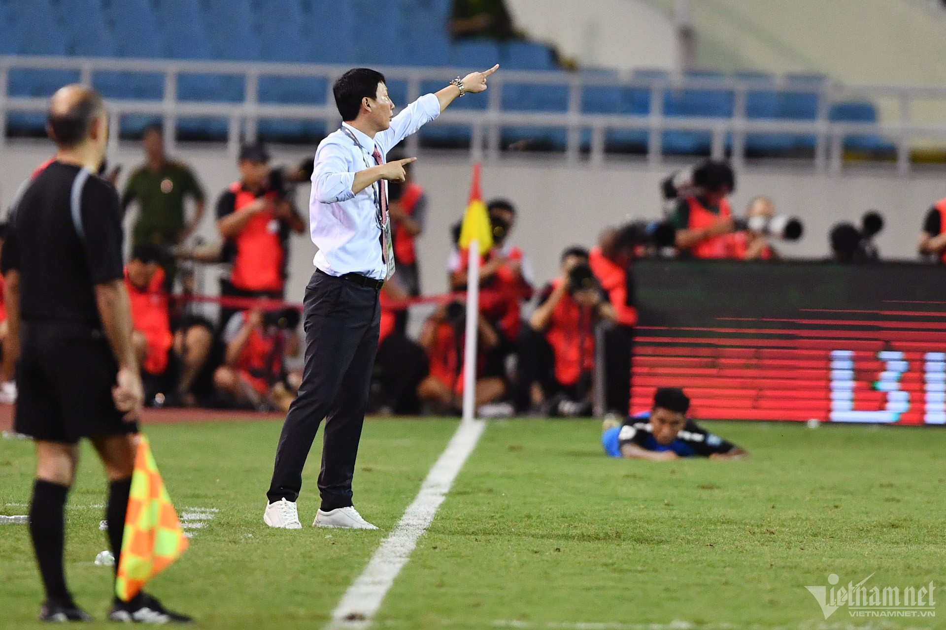 Đây cũng là trận đầu tiên HLV Kim Sang-sik dẫn dắt một đội tuyển quốc gia. Trước đó, ông có hơn 2 năm cầm quân ở Jeonbuk Hyundai Motors, CLB thuộc K League 1. Sau hiệp 1 có phần điềm tĩnh, quan sát và thăm dò chiến thuật của đối thủ, đến hiệp 2, nhà cầm quân người Hàn Quốc tỏ ra quyết liệt chỉ đạo học trò hơn ở bên đường biên dọc.